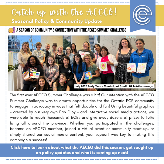 It's here: Check out our latest seasonal newsletter for policy updates, and to learn what the AECEO was up to this Summer & what is coming up next! Click here to download the Summer 2025 Policy & Community Update in PDF!