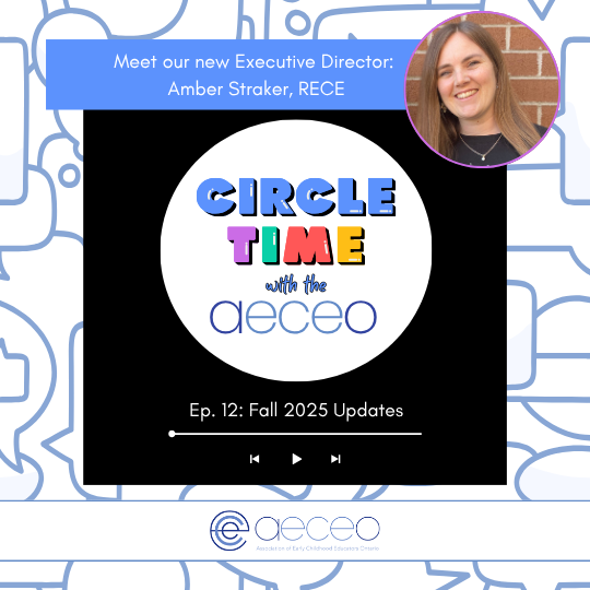 The AECEO is thrilled to share our latest project with the ECE community: our new podcast! Circle time with the AECEO is a podcast made for ECEs, by ECEs and we want to hear what YOU think! Connect with the AECEO on Facebook, Instagram & TikTok and let us know your thoughts!